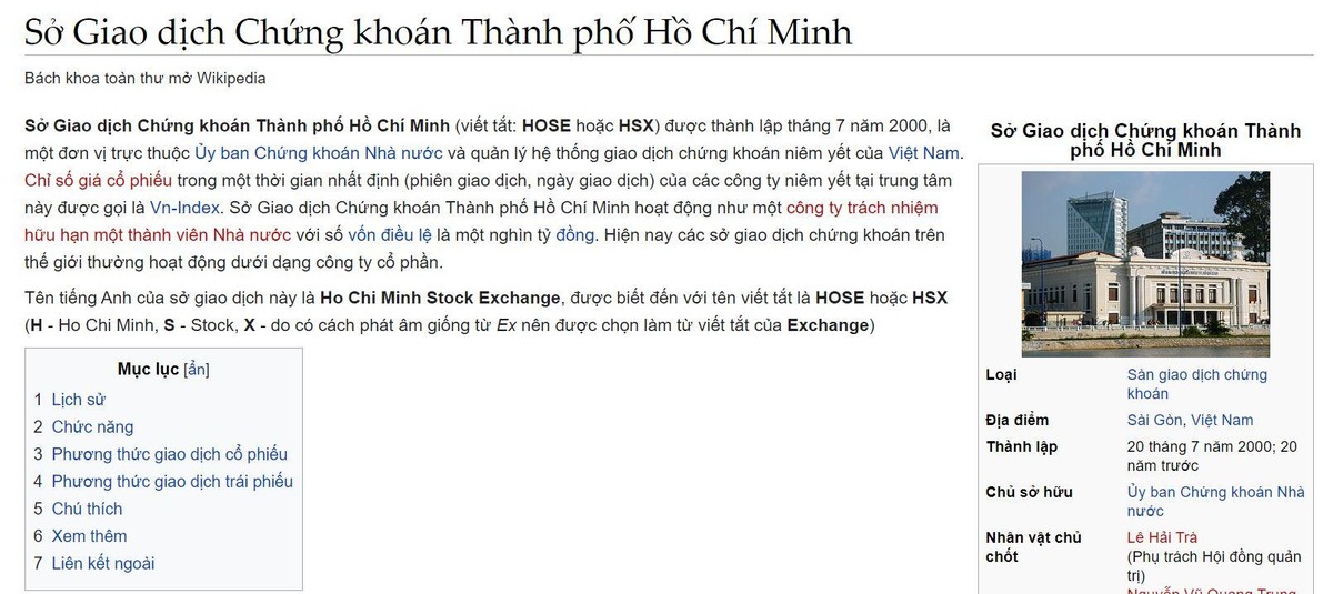Trên Wikipedia HOSE được mô tả là “sàn chứng khoán có chất lượng dịch vụ thuộc hàng thấp kém nhất thế giới |