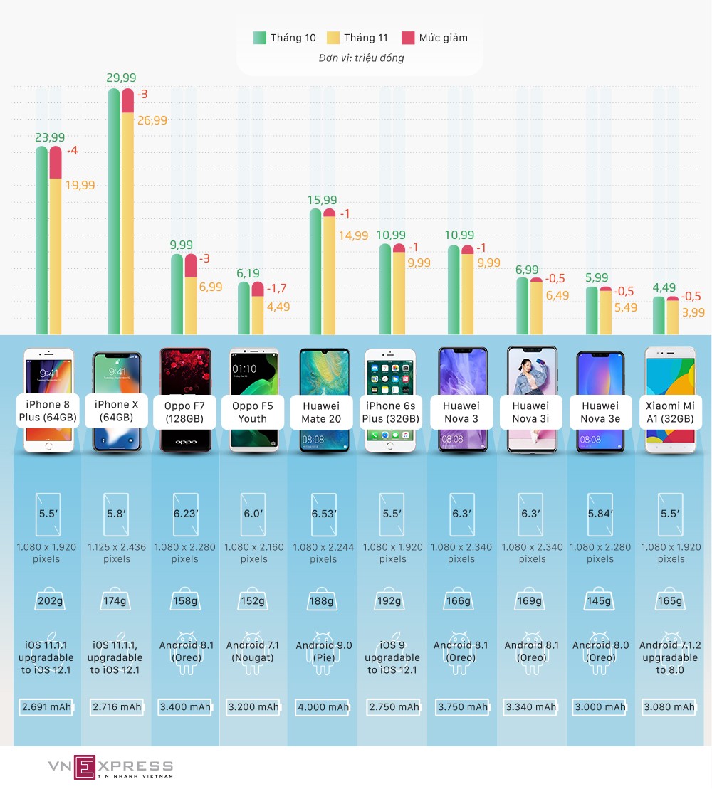 Theo Vnexpress Tin liên quan Smartphone đầu tiên của Vingroup lộ diện 05/12/2018 12:16 10 smartphone giảm giá nổi bật trong tháng 10 09/11/2018 14:33 Giá smartphone cao cấp tăng thế nào 19/07/2018 07:37 Bộ ba smartphone mạnh nhất thị trường đọ sức 29/10/2018 14:05 Từ khóa smartphone giảm tháng 11 smartphone Huawei Apple