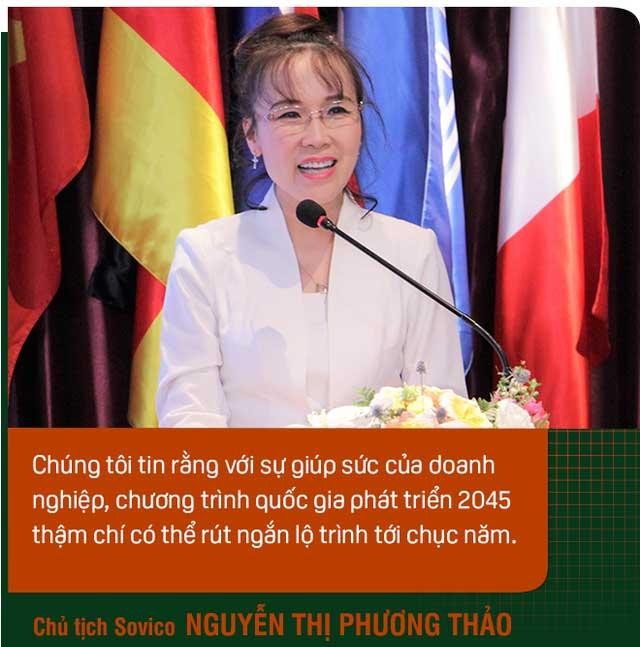 Bà Thảo nhấn mạnh, doanh nghiệp sẵn sàng tham gia các chương trình lớn của quốc gia, đặc biệt là chuyển đổi số quốc gia toàn diện. "Doanh nghiệp sẵn sàng cống hiến, xả thân với điều kiện nguồn vốn, kinh nghiệm quản trị, quan hệ quốc tế và tài chính sẵn có. Chúng tôi tin rằng với sự giúp sức của doanh nghiệp, chương trình quốc gia phát triển 2045 thậm chí có thể rút ngắn lộ trình tới chục năm", bà Thảo nói.