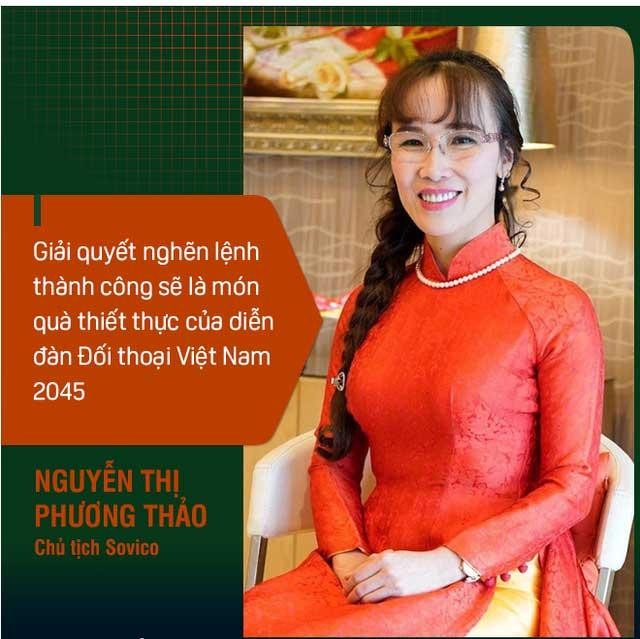 "Giải pháp này nếu thành công, sẽ món quà đầu tiên, rất thiết thực của diễn đàn Đối thoại Việt Nam 2045", nữ tỷ phú Phương Thảo khi đó cho biết.