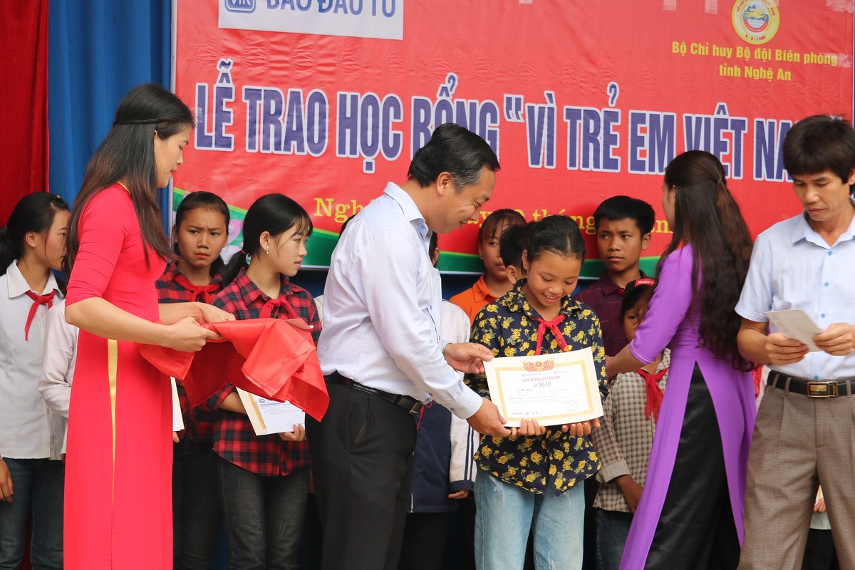 Đoàn từ thiện đã trao 100 suất học bổng có tổng trị giá 50 triệu đồng tại Trường tiểu học Tri Lễ (huyện Quế Phong) và trao 40 suất quà tổng trị giá 40 triệu đồng hỗ trợ con cán bộ, chiến sỹ Bộ đội Biên phòng tỉnh Nghệ An mắc bệnh hiểm nghèo và hoàn cảnh khó khăn.