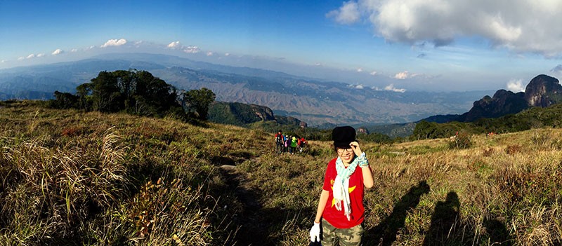 Ấn tượng đầu tiên là không khí ở đây cực kỳ trong lành. Cái cảm giác không khí tinh khiết đi qua mũi vào buồng phổi khiến người ta thấy khỏe re. Ngửa mặt lên trời hay quay mặt sang bốn bề chỉ thấy mây và mây. Mây trắng bồng bềnh ngợp mắt khiến người ta nhanh quên đi cảm giác mệt nhọc trước đó. Gió thổi phần phần, to và như hút người xuống vách núi. Đó là một cảm giác tuyệt vời mà có lẽ tôi chưa bao giờ được trải nghiệm.