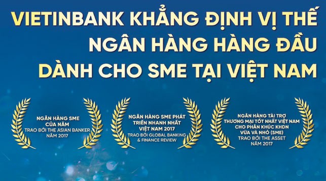 Năm 2017, VietinBank đã đạt 3 giải thưởng danh giá là “Ngân hàng SME của năm” (SME Bank of the year) do The Asian Banker trao, giải thưởng “Ngân hàng SME phát triển nhanh nhất Việt Nam 2017” (Fastest Growing SME Bank in Vietnam 2017) của Global Banking & Finance Review và giải thưởng “Ngân hàng Tài trợ thương mại tốt nhất Việt Nam cho phân khúc DN SME” do The Asset tôn vinh.