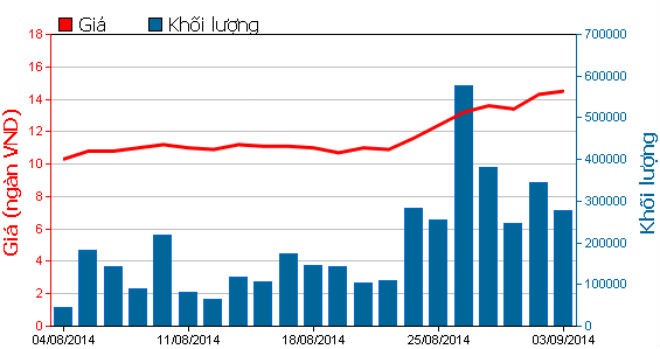 Trong 1 tháng qua, cổ phiếu KBC đã tăng mạnh, đặc biệt là trong tuần giao dịch trước kỳ nghỉ lễ Quốc khánh (trong đó có 4 phiên tăng trần), giá dao động từ 10.300 – 14.500 đồng/cổ phiếu, tương ứng tăng 40,78%.