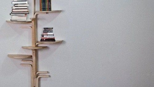 Ghế gỗ IKEA được tùy biến thành giá sách. Ảnh: Supplied