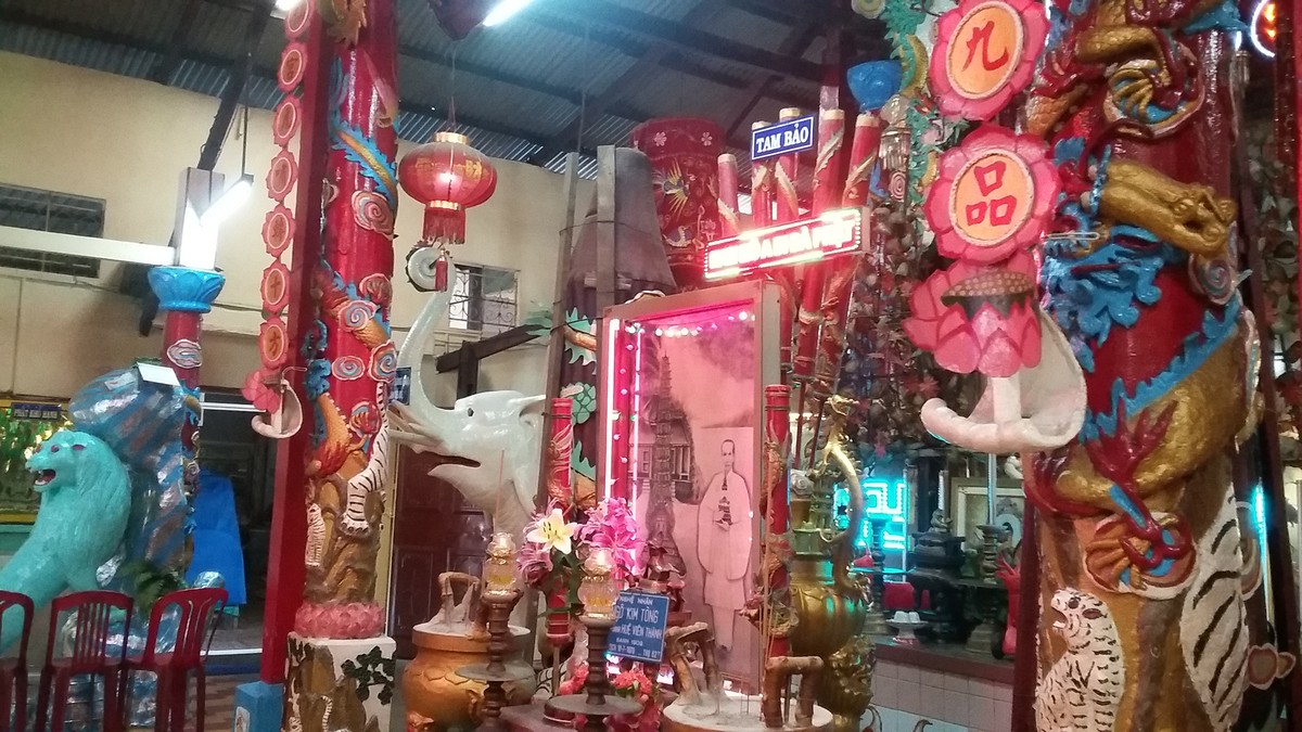 Điện thờ chính trong chùa sẽ gây ngạc nhiên cho nhiều du khách miền Bắc, bởi sự khác biệt đáng kể trong cách sắp đặt, bài trí và hình ảnh tượng pháp. Ảnh: Thành Nguyễn.