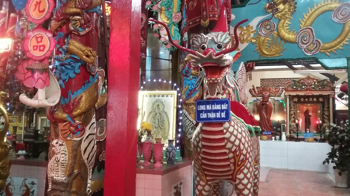 Các pho tượng trong chùa được làm từ đất sét pha trộn bột hương (nhang) cùng với keo ô dước để không bị nứt nẻ, và đều được sơn phết tỉ mỉ bằng sơn và dầu bóng. Ảnh: Thành Nguyễn.