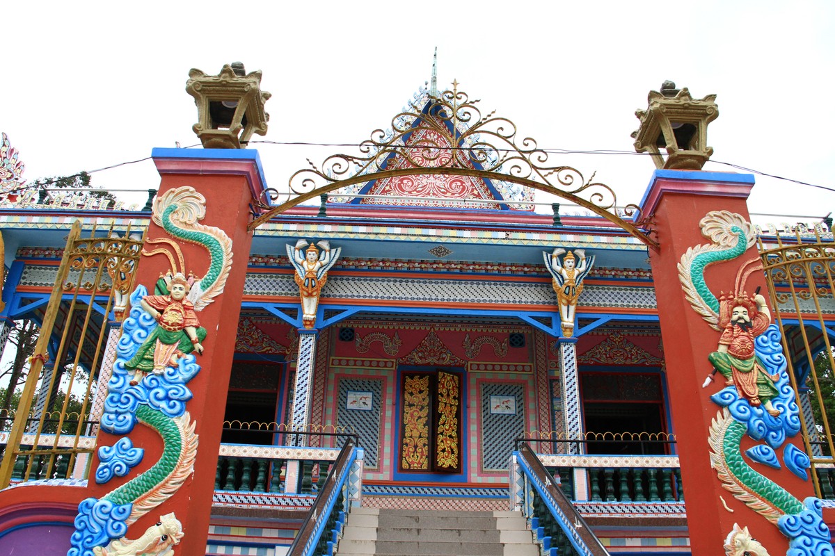 Chùa Chén Kiểu, còn gọi là chùa Sà Lôn cũng gây ấn tượng mạnh với du khách với hàng vạn mảnh sứ tạo nên hiệu ứng thị giác rất lạ mắt. Ảnh: Thành Nguyễn.