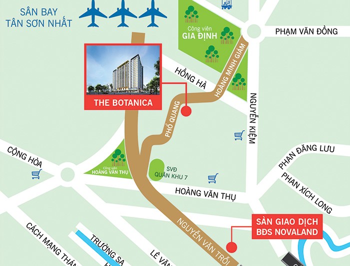 The Botanica sở hữu vị trí lý tưởng ngay trung tâm quận Tân Bình, rất gần sân bay và 2 công viên lớn của TP. HCM