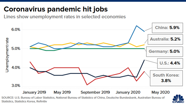 Không chỉ riêng Mỹ đối mặt với cuộc chiến với tỷ lệ thất nghiệp gia tăng, Úc và Hàn Quốc cũng có những số liệu tương tự. Theo một số cảnh báo từ các nhà kinh tế rằng tình hình có thể trở nên tồi tệ hơn.
