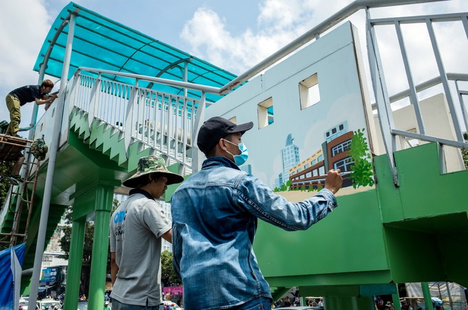 Ông Huỳnh Công Thắng, đại diện dự án cho biết, từ nay đến cuối năm 70 hoạ sĩ cùng 200 nhân công sẽ hoàn thiện trang trí 7 cầu bộ hành trên đường Nguyễn Văn Cừ, Võ Văn Kiệt (quận 5), Nơ Trang Long, Điện Biên Phủ (quận Bình Thạnh), Hoàng Văn Thụ (quận Phú Nhuận), Hoàng Minh Giám và Phạm Văn Đồng (quận Gò Vấp).