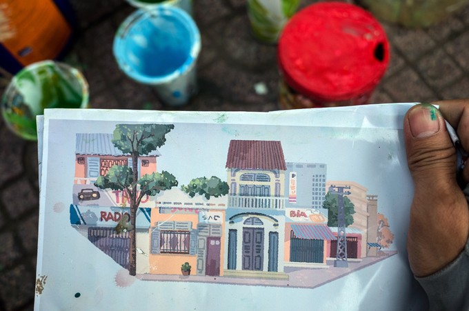 Hình vẽ mẫu để họa sĩ phác thảo. "Chủ đề xoay quanh việc tuyên truyền ý thức của người dân khi tham gia giao thông, những giá trị văn hóa, con người xưa và thành phố năng động, phát triển hiện nay", họa sĩ Anh Tuấn chia sẻ.