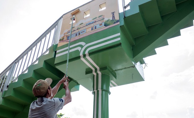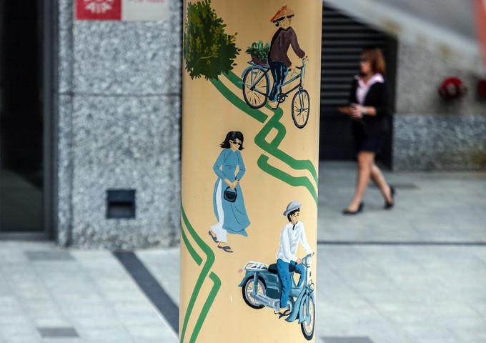 Tận dụng không gian dưới gầm cầu bên đường Nguyễn Văn Cừ (quận 5), các họa sĩ trang trí giao thông Sài Gòn xưa.