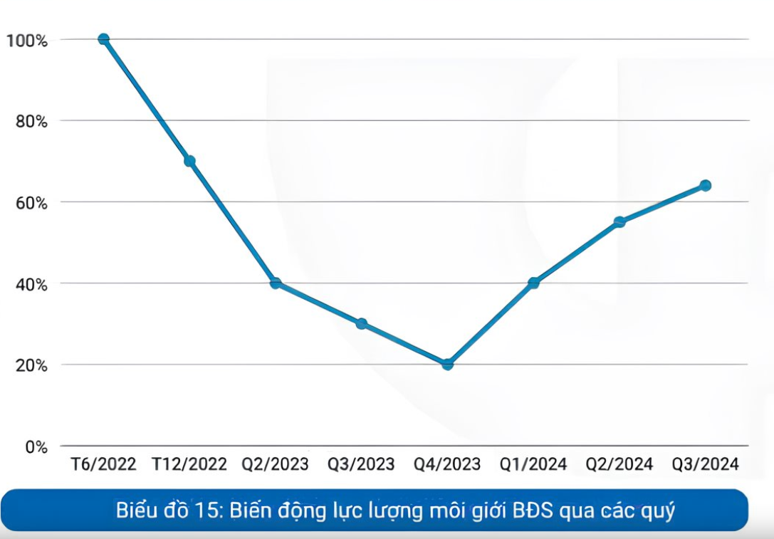 Cũng theo VARS, trong năm 2023, thị trường đã có đến 70% môi giới bất động sản chuyển nghề hoặc rời bỏ ngành. Trước đó, số lượng môi giới bất động sản hoạt động trong lĩnh vực này đạt khoảng 300.000 người. Tuy nhiên, do tác động của biến động thị trường, hiện chỉ còn khoảng 100.000 người tiếp tục hoạt động.