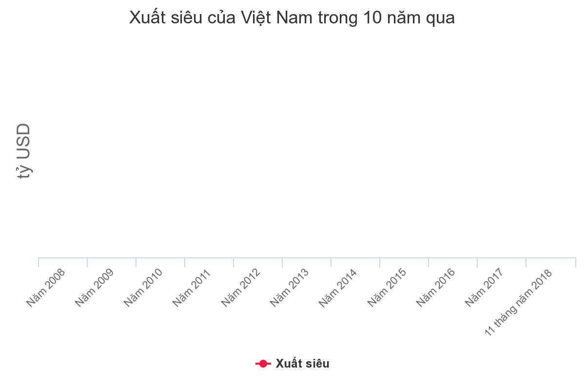 Mục tiêu từ đầu năm, xuất khẩu tăng trưởng 10%, nhập siêu dưới 3%. Với những gì đạt được trong 11 tháng, cán cân thương mại đã lội ngược dòng, tiếp tục thặng dư. Tính chung, Việt Nam ghi nhận xuất siêu hơn 7,4 tỷ USD, gấp 2,5 lần số liệu xuất siêu 2,92 tỷ USD năm 2017 và cao nhất trong 10 năm qua. Dự báo, xuất siêu của Việt Nam sẽ tiếp tục tăng trong tháng 12, có thể tiến sát mốc hai con số.