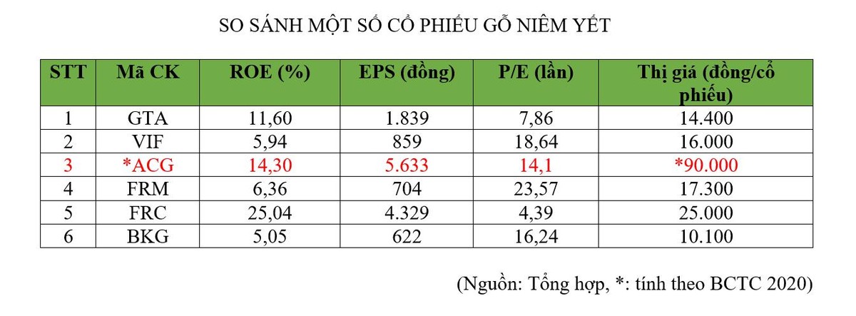 Phó tổng giám đốc công ty chứng khoán có trụ sở quận Hai Bà Trưng (Hà Nội) cho hay, phương pháp tính giá chỉ mang tính chất tham khảo, phụ thuộc vào tờ trình đề nghị mức giá từ doanh nghiệp đăng ký giao dịch hoặc từ đơn vị tư vấn cho doanh nghiệp đó. Tuy nhiên, mức 90.000 đồng/cổ phiếu của ACG được chấp thuận khá chênh lệch so với một số doanh nghiệp cùng ngành khác cũng chuyên về gỗ nội thất và xuất khẩu.
