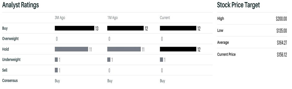 Hiện tại, có 12 nhà phân tích khuyến nghị mua và 12 nhà phân tích khuyến nghị giữ ABBV với giá mục tiêu trung bình là 164,27 USD, theo Barron’s.