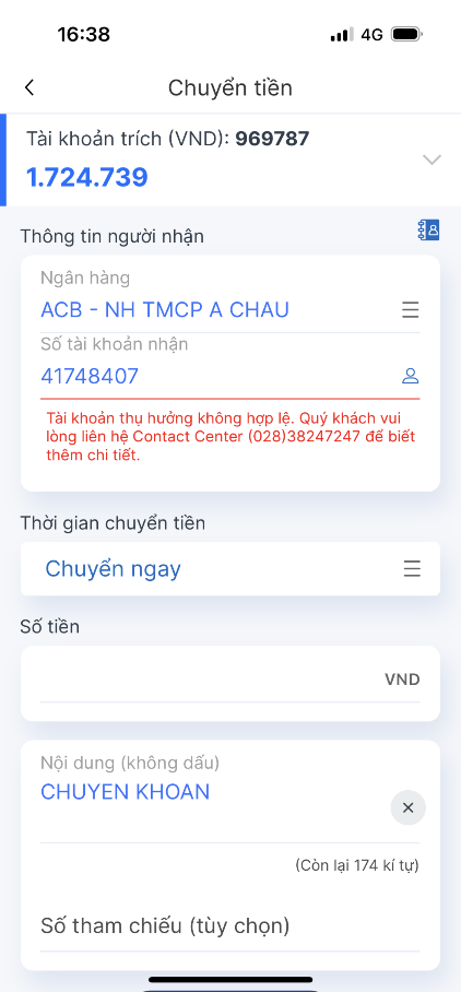 Khách hàng bị dẫn dụ lừa đảo nhưng không mất tiền do hệ thống bảo mật ngân hàng chặn giao dịch tới tài khoản nằm trong danh sách nghi ngờ.