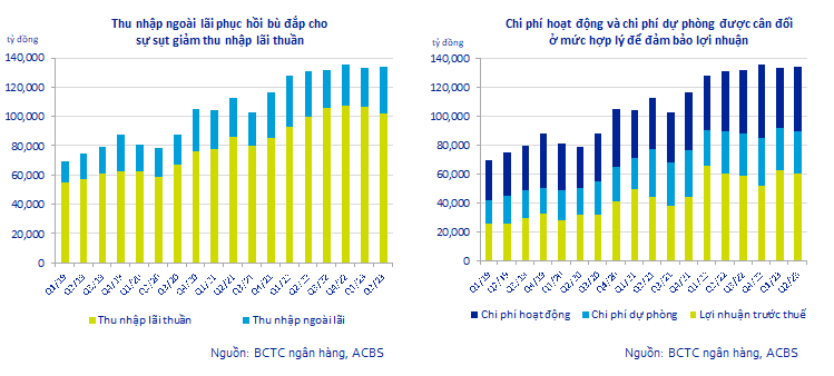 Lợi nhuận từ hoạt động kinh doanh trái phiếu chính phủ phục hồi mạnh nhờ lợi suất trái phiếu chính phủ đã giảm hơn 2% ở hầu hết các kỳ hạn kể từ đầu năm. Tuy nhiên, chi phí dự phòng sẽ chịu áp lực tăng trong nửa cuối năm 2023 do nợ xấu vẫn ở mức cao và bộ đệm dự phòng không còn dày.