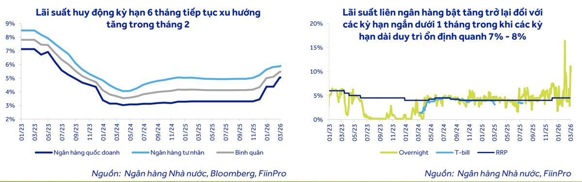 Đến nay, lãi suất huy động kỳ hạn 6 tháng tại nhóm ngân hàng quốc doanh đã tăng khoảng 0,7% từ đầu năm, trong khi lãi suất cho vay bất động sản vẫn dao động quanh mức 10-14%. Xu hướng này có khả năng sẽ tiếp diễn trong nửa đầu năm 2026, cho đến khi các yếu tố như tỷ giá trở nên thuận lợi hơn và áp lực từ các yếu tố địa chính trị dần hạ nhiệt, giúp ổn định dòng vốn ngoại tệ.