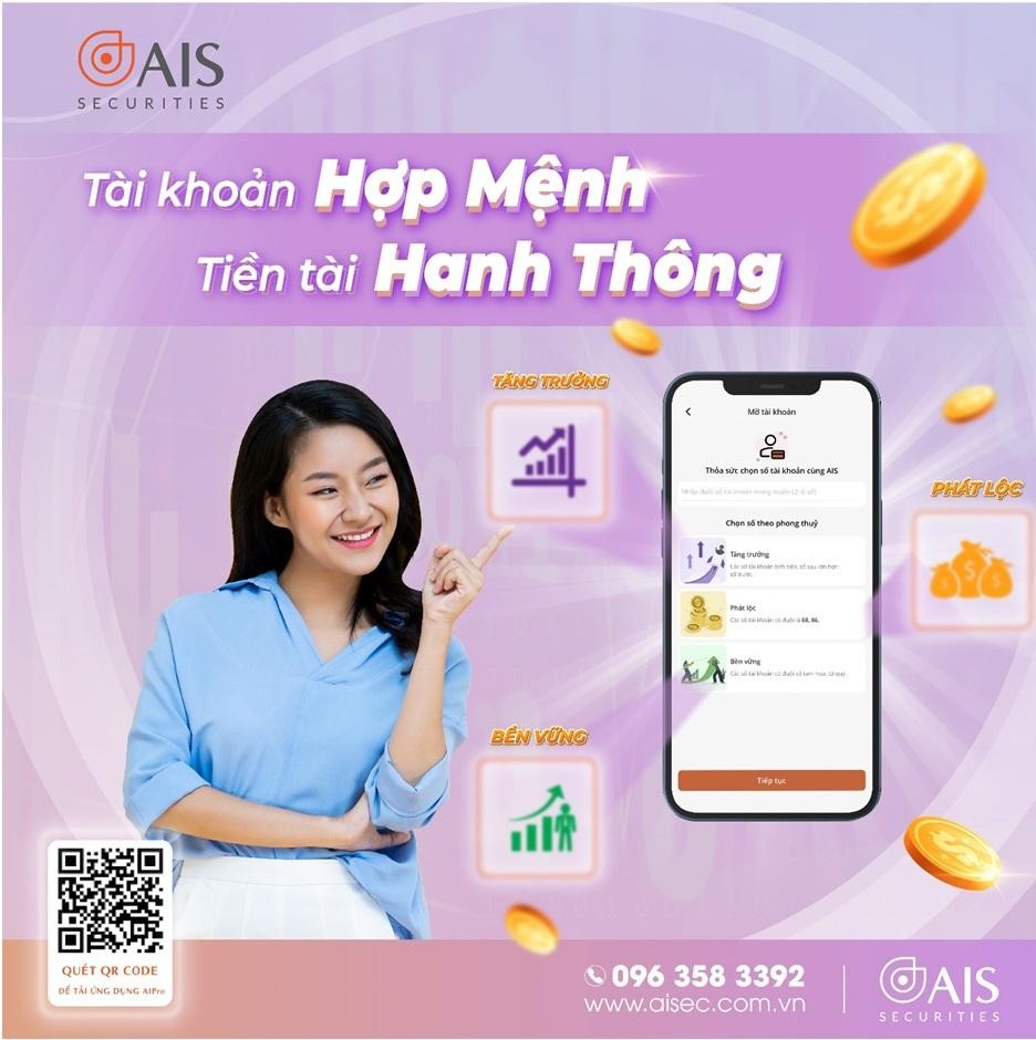 Nắm bắt được tâm lý nói trên của nhà đầu tư, Công ty Cổ phần Chứng khoán AIS (AIS) đã triển khai chương trình trình "Tài khoản hợp mệnh, tiền tài hanh thông" mở tài khoản chứng khoán số đẹp cho khách hàng.