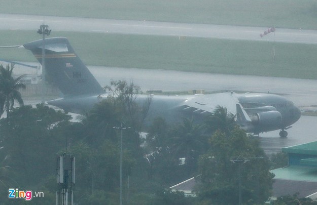Máy bay vận tải C-17 hạ cánh trong chuyến công du của Tổng thống Trump đến Việt Nam dự APEC. Ảnh:Hải An.