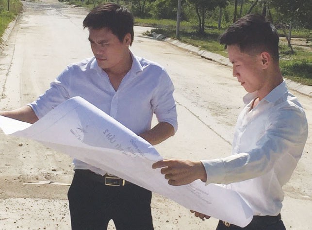Khách hàng đang xem bản đồ quy hoạch của một dự án ven đô