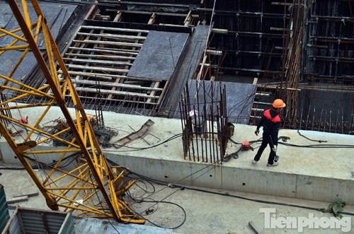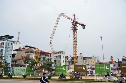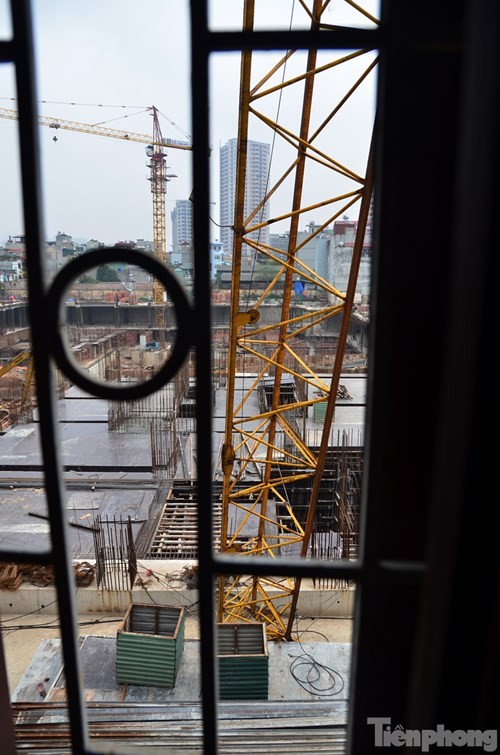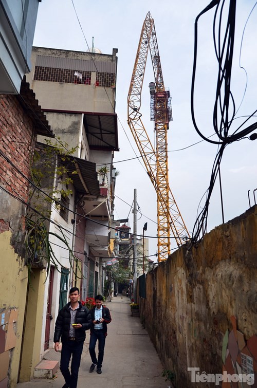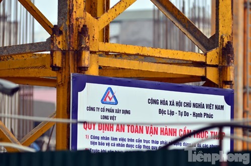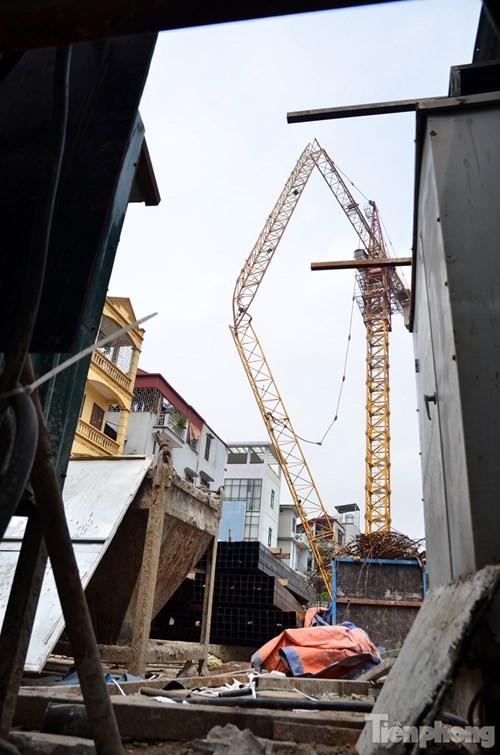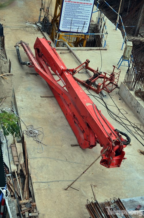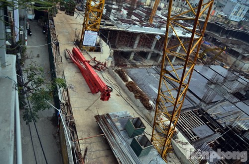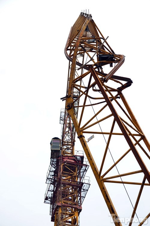 Chiếc cần cẩu cao hàng chục mét bất ngờ gãy gập, khiến nhiều người dân tại khu vực đường Tân Mai và Trương Định hoảng hồn.