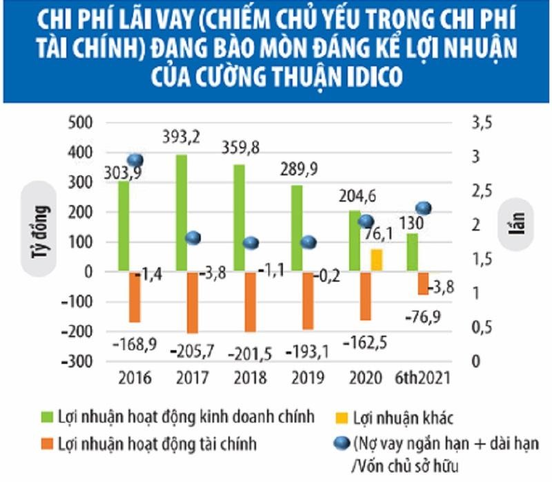 Nếu như sự tăng trưởng của các hoạt động kinh doanh chính là tín hiệu tích cực, thì hoạt động tài chính tiếp tục là điểm trừ của Cường Thuận Idico, khi ghi nhận lỗ 76,9 tỷ đồng trong nửa đầu năm nay. Mặc dù số lỗ đã giảm 4,1 tỷ đồng so với cùng kỳ năm ngoái, nhưng vẫn bào mòn đến 59% lợi nhuận từ hoạt động kinh doanh mang lại, chủ yếu do chi phí lãi vay.