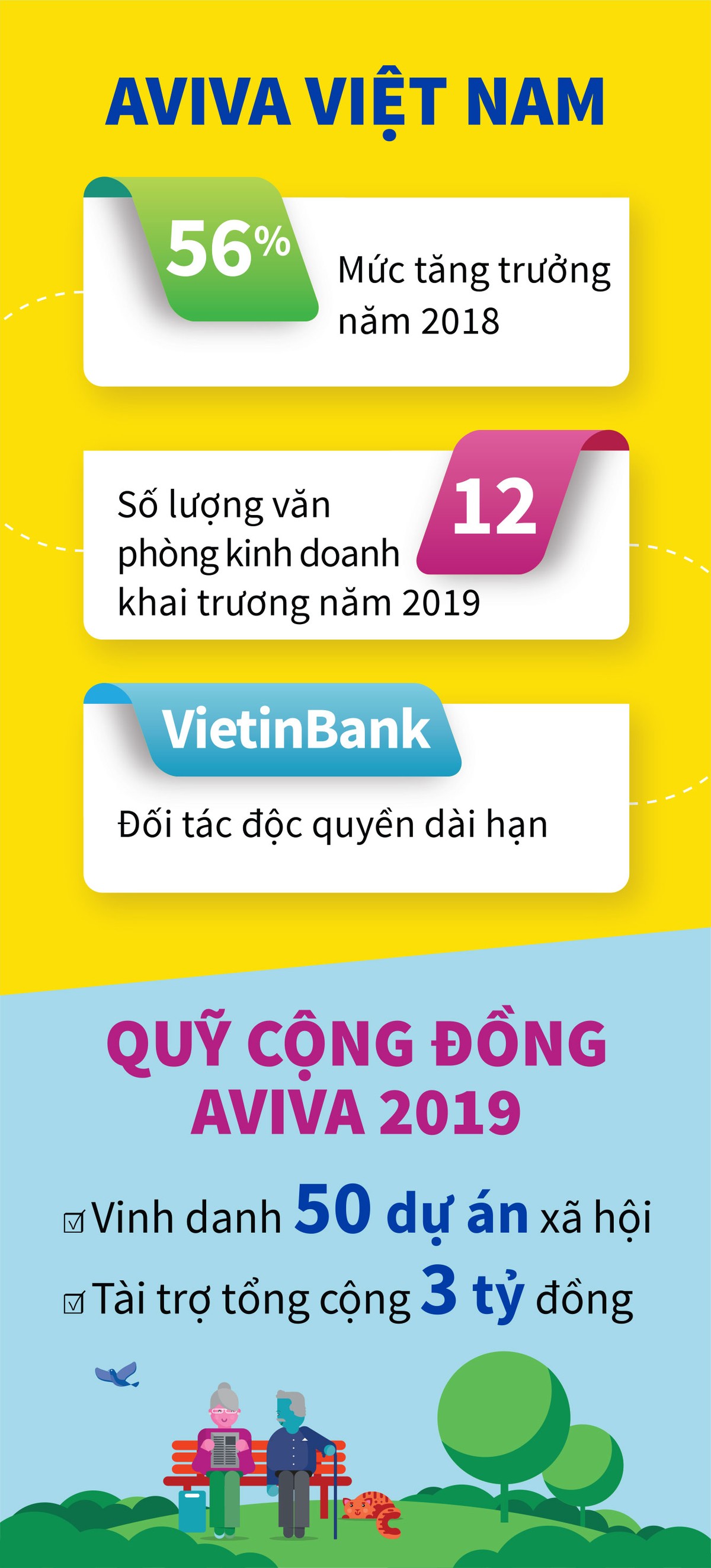 Ðiển hình là việc triển khai Quỹ Cộng Ðồng Aviva, một chương trình CSR quan trọng đạt được nhiều thành công tại các thị trường Châu Âu và Châu Mỹ. Ở Ðông Nam Á, Việt Nam là thị trường đầu tiên thực hiện chương trình từ 2017.