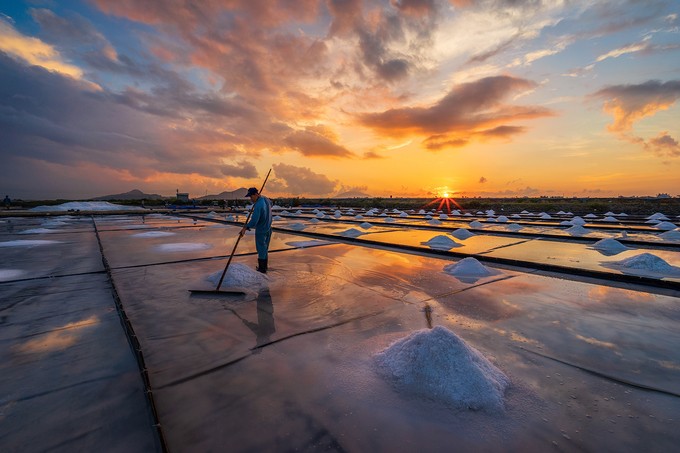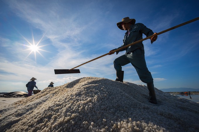 “Khi nắng lên, những phụ nữ tại đây phải đội nón lá và trùm kín mặt để tránh hơi nóng bốc lên từ ruộng muối. Tôi cảm thấy thán phục khi thấy công việc họ đang làm, với những gánh muối vác trên vai ngày này qua năm khác”, anh Hưng chia sẻ.
