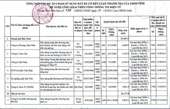 Bắc Ninh công bố 15 doanh nghiệp vi phạm pháp luật đất đai ảnh 2