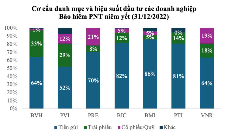 Xem xét hiệu quả đầu tư tài chính của các doanh nghiệp bảo hiểm niêm yết giai đoạn 2022 - 2023 cho thấy, có các bước chuyển dịch chiến lược đầu tư phù hợp với biến động thị trường theo hướng nâng tỷ trọng đầu tư vào tiền gửi để đạt được lãi suất cao trong nửa đầu năm 2023.
