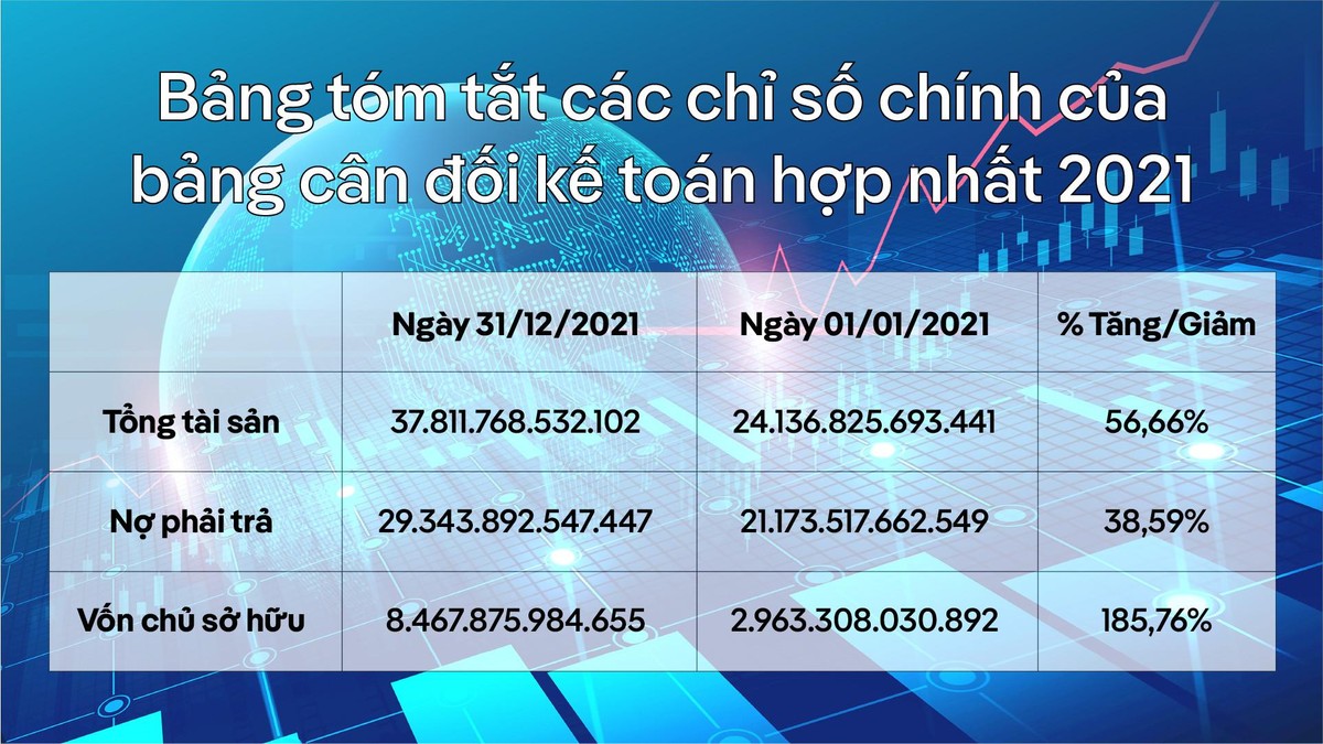 Điểm tích cực cho năm 2021 là cơ cấu tài chính mạnh khoẻ hơn, tỷ lệ nợ vay trên vốn chủ sở hữu giảm từ 7,15 lần tại cuối năm 2020 xuống 3,47 lần vào cuối năm 2021.