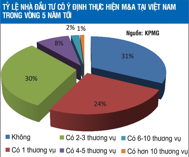 Năm 2013, Công ty KPMG đã tiến hành khảo sát 400 nhà đầu tư, tài chính chiến lược tại Việt Nam, Singapore, Hồng Kông, Nhật Bản, Hàn Quốc, Mỹ và khu vực châu Âu. Kết quả cho thấy, xu hướng này sẽ còn tiếp diễn, với 69% số người được hỏi sẽ thực hiện ít nhất một thương vụ trong vòng 5 năm tới, chủ yếu trong lĩnh vực thực phẩm đồ uống, hàng tiêu dùng nhanh, bán lẻ và sản xuất công nghiệp.