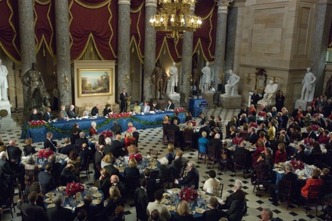 Bữa tiệc diễn ra tại Hội trường Statuary thuộc Toàn nhà Quốc hội với sự hiện diện của tổng thống Obama, phó tổng thống Joe Biden cùng gia đình và các khách mời là những quan chức chính quyền tương lai.