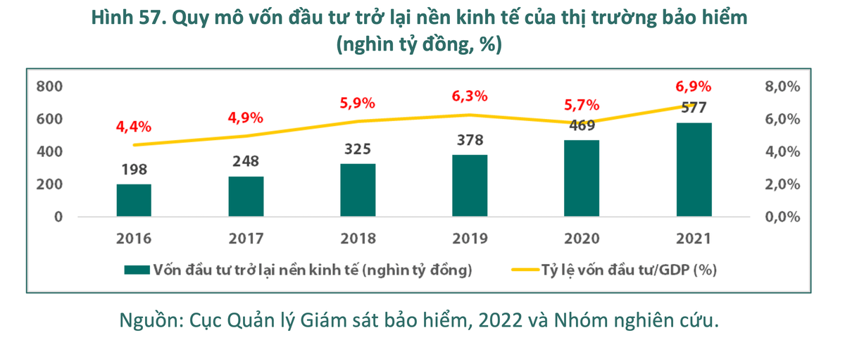 Báo cáo nhận định thị trường tái bảo hiểm còn tương đối sơ khai. Tới cuối năm 2021, mới chỉ có 2 doanh nghiệp tái bảo hiểm trong nước là Tổng công ty cổ phần Tái bảo hiểm quốc gia Việt Nam (VINARE) và Tổng công ty cổ phần Tái bảo hiểm PVI (PVI Re), với tổng lợi nhuận sau thuế đạt hơn 490 tỷ đồng năm 2021 (theo báo cáo tài chính của 2 doanh nghiệp). Theo số liệu năm 2020, phí hoạt động tái bảo hiểm đạt 21 nghìn tỷ đồng trong tổng số 186 nghìn tỷ đồng phí bảo hiểm gốc (chiếm khoảng 11,3%).