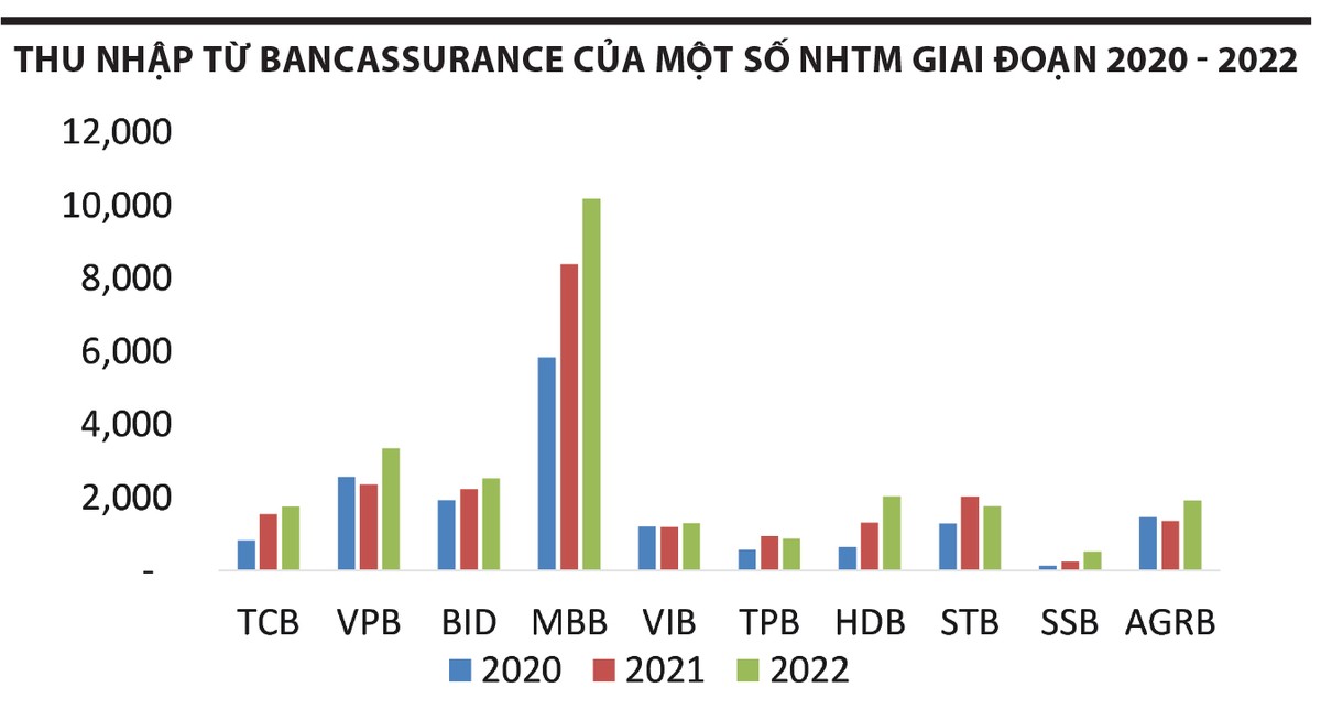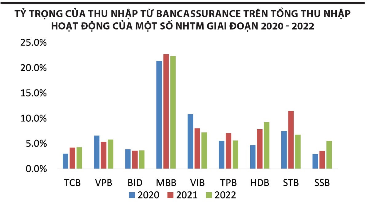 Đa phần các ngân hàng đã ghi nhận tăng trưởng mạnh phí dịch vụ từ hoạt động bancassurance trong giai đoạn 2020 - 2022, khi nhiều doanh nghiệp bảo hiểm nhân thọ và phi nhân thọ liên tục đẩy mạnh hoạt động bán chéo sản phẩm qua ngân hàng. Đối với mảng bảo hiểm nhân thọ (phần lớn phí bancassurance của ngân hàng đến từ mảng này), doanh thu khai thác mới qua kênh ngân hàng đã tăng theo cấp số nhân trong vài năm qua, từ chỗ chiếm 20% tổng phí khai thác mới của các doanh nghiệp ngành này trong năm 2018 lên mức 40% vào năm 2021 và 45% vào năm 2022.