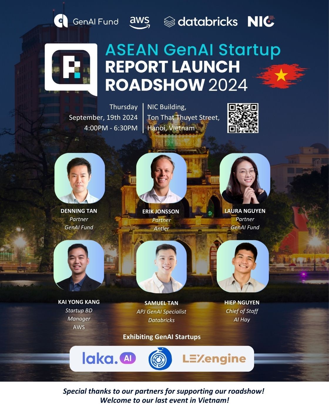Ngày 19/9 tới, tại Hà Nội, Quỹ đầu tư GenAI Fund hợp tác với Amazon Web Services (AWS), Databricks và Trung tâm Đổi mới Quốc gia Việt Nam (NIC) sẽ lần đầu tiên giới thiệu Báo cáo Khởi nghiệp GenAI ASEAN.