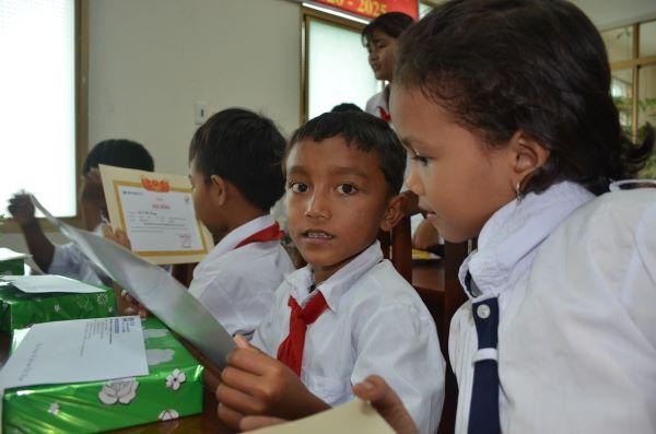 Các em học sinh được nhận học bổng. |