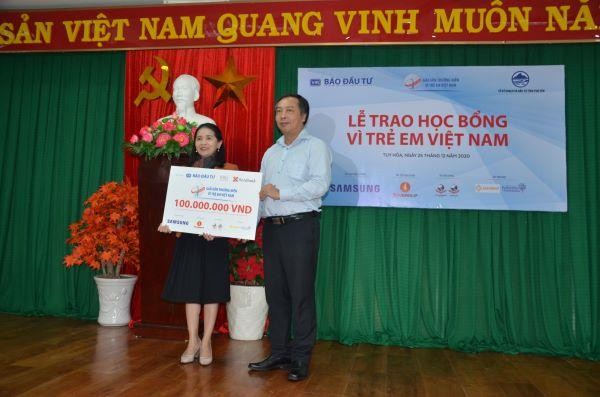 Liên tục trong nhiều năm qua, Báo Đầu tư đã tiến hành trao Học bổng “Vì trẻ em Việt Nam- Swing for the Kids” cho hàng trăm em học sinh có hoàn cảnh khó khăn, đạt thành tích học tập tốt trên địa bàn tỉnh Phú Yên.