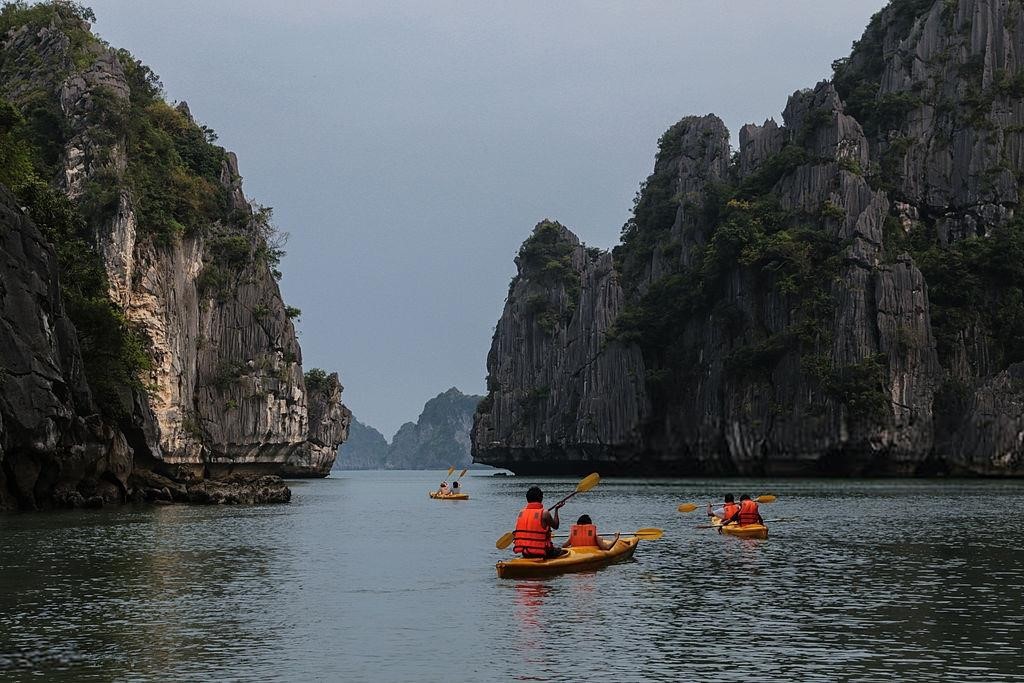 Vịnh Hạ Long (Quảng Ninh) là điểm đến phổ biến với khách nước ngoài khi tới Việt Nam. Du khách tới đây có thể tham gia tour du thuyền ngắm vịnh, khám phá các đảo và hang động. Tuy nhiên, theo Culture Trip, trải nghiệm thú vị nhất tại nơi này là chèo thuyền kayak. "Nằm dài trên tàu cũng hay nhưng cùng nhau chèo thuyền kayak sẽ tình cảm hơn rất nhiều", Culture Trip bình luận.
