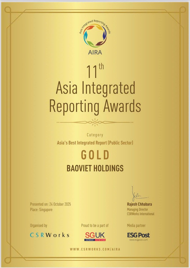 Bên cạnh đó, trong 14 năm liên tiếp, Bảo Việt được Hiệp hội Truyền thông chuyên nghiệp Hoa Kỳ (LACP) tôn vinh với nhiều hạng mục giải thưởng quan trọng: Giải Bạch Kim danh giá nhóm ngành Tài chính - Bảo hiểm cho cả Báo cáo thường niên và Báo cáo Phát triển bền vững, Top 5 Báo cáo thường niên xuất sắc nhất của Việt Nam, Giải Vàng cho Báo cáo xuất bản nội bộ và Giải Báo cáo ứng dụng công nghệ xuất sắc; Xếp hạng 1/100 Báo cáo thường niên tốt nhất khu vực châu Á và thứ 17/100 Báo cáo thường niên tốt nhất thế giới. Báo cáo tích hợp của Bảo Việt được trao Giải Vàng tại Asia Integrated Reporting Awards (AIRA) hạng mục Báo cáo tích hợp tốt nhất châu Á - Khối doanh nghiệp nhà nước. Đặc biệt, báo cáo cũng thể hiện tinh thần sẵn sàng lắng nghe và cải thiện theo khuyến nghị quốc tế. Bảo Việt đã đặt mục tiêu cải thiện các lĩnh vực còn hạn chế như tích hợp sâu hơn ESG vào chiến lược kinh doanh và tăng cường tỷ lệ nữ lãnh đạo.