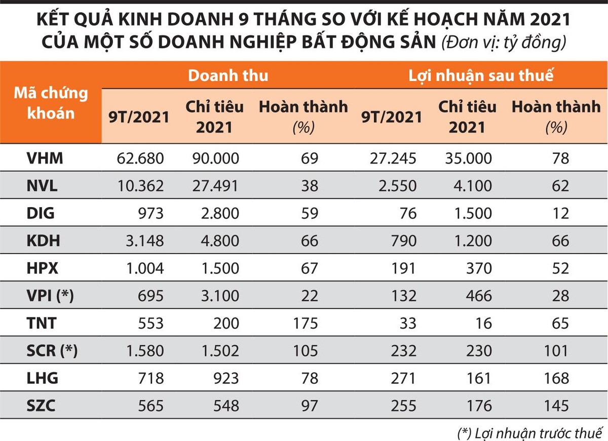Tại Tổng công ty cổ phần Đầu tư Phát triển Xây dựng (DIC Corp, mã chứng khoán DIG), trong 9 tháng đầu năm 2021, doanh nghiệp ghi nhận lợi nhuận trước thuế 183,5 tỷ đồng, tương đương 12,7% kế hoạch năm. Kết quả kinh doanh của DIC Corp thường đột biến vào quý cuối năm. Theo lãnh đạo doanh nghiệp này, lợi nhuận trước thuế năm 2021 có thể đạt 1.200 tỷ đồng, hoàn thành 83% kế hoạch.