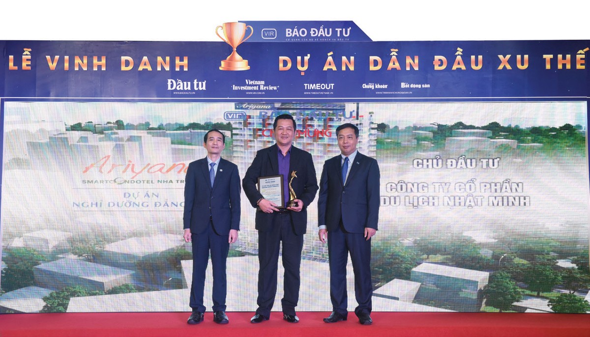 Tổ hợp căn hộ khách sạn Ariyana SmartCondotel của Công ty cổ phần Du Lịch Nhật Minh đã vinh dự được độc giả Báo Đầu tư bình chọn là "Dự án dẫn đầu xu thế nghỉ dưỡng" trong hàng ngàn dự án nghỉ dưỡng được giới thiệu trên thị trương trong năm qua.