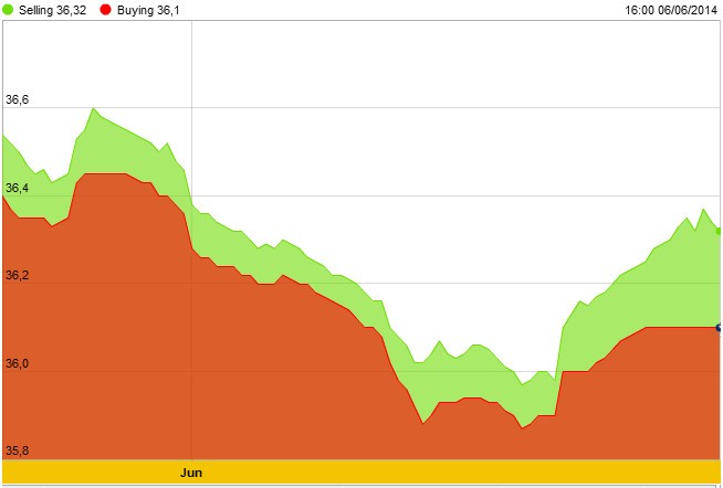 Giá vàng giao ngay ở mức 1.254,65 USD/ounce lúc 9h36 sáng nay, trên sàn London. Giá đã tăng 0,4% trong tuần này, sau khi giảm còn 1.240,73 USD/ounce hôm 3/6, mức thấp nhất kể từ ngày 31/1. Giá vàng giao tháng 8 tăng 0,1% lên 1.254,6 USD/ounce trên sàn New York.