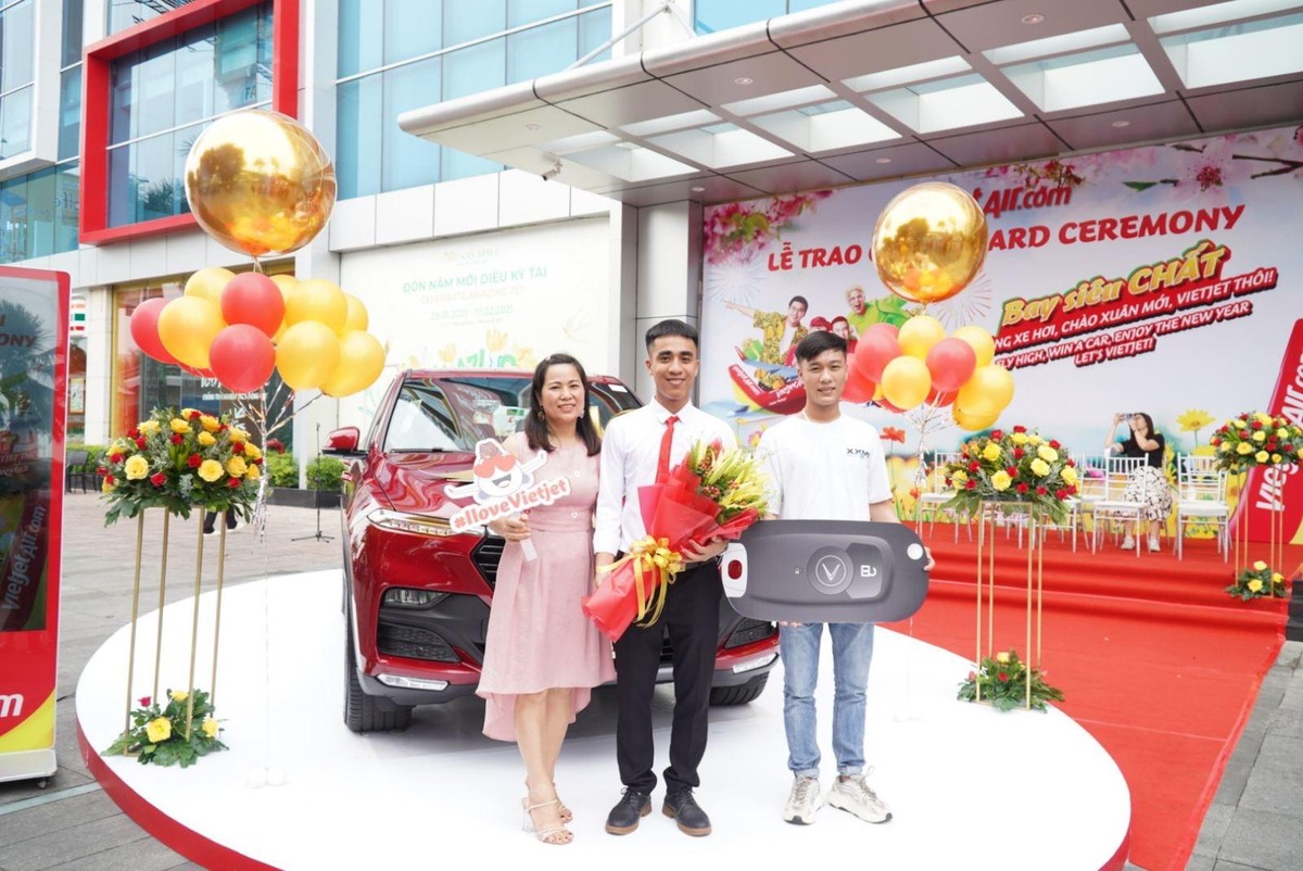 Phó Tổng giám đốc Vietjet trao xe hơi cho Trần Quang Vĩ (ngày 3/4) |