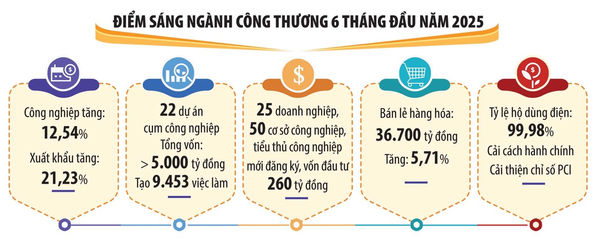 Ngành cũng tăng cường quản lý phát triển chợ, triển khai kế hoạch phát triển thương mại điện tử, chuyển đổi số năm 2025; phối hợp thực hiện cuộc vận động “Người Việt Nam ưu tiên dùng hàng Việt Nam” và Chương trình OCOP (mỗi xã một sản phẩm) giai đoạn 2021-2025. Đồng thời, ngành công thương theo dõi và hỗ trợ chủ đầu tư xử lý vướng mắc các dự án điện, đẩy nhanh tiến độ, đặc biệt là giải phóng mặt bằng các công trình 110kV.