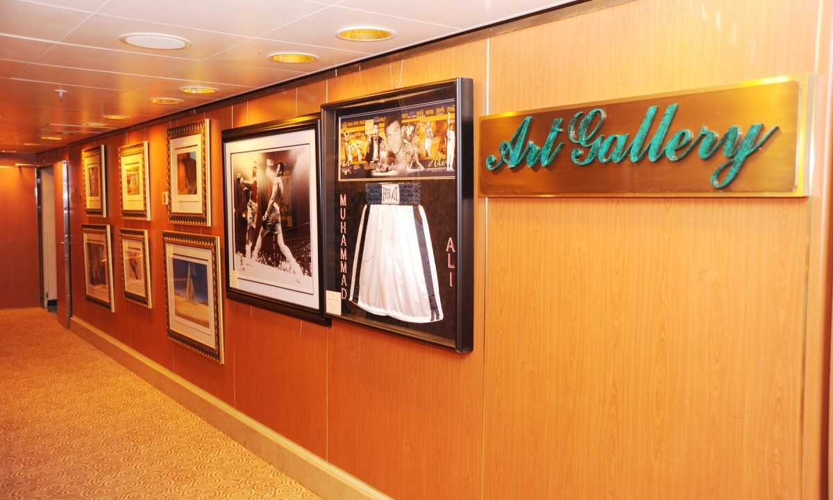Những tác phẩm nghệ thuật trong phòng trưng bày trên tàu cho khách tham quan và đấu giá. Ảnh: Seascanner.