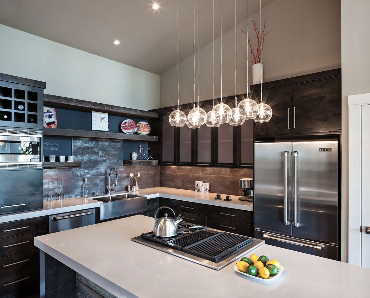Mặc dù ánh sáng đã và đang tiếp tục là một yếu tố quan trọng trong tất cả các gian bếp hiện đại, song, việc sử dụng đèn treo được cho là một cách để tạo cho gian bếp một ấn tượng mới mẻ và độc đáo. Đèn treo thả được thiết kế với nhiều chất liệu khác nhau như đồng, thủy tinh, thép không gỉ.